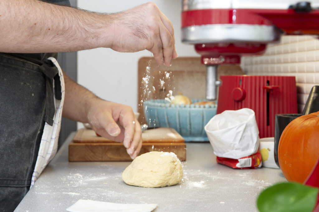Kun taikina on mukavan napakka eikä tartu enää käsiin, peittele se esimerkiksi mehiläisvahakääreellä tai tuorekelmulla ja jätä tekeytymään 15–20 minuutiksi.