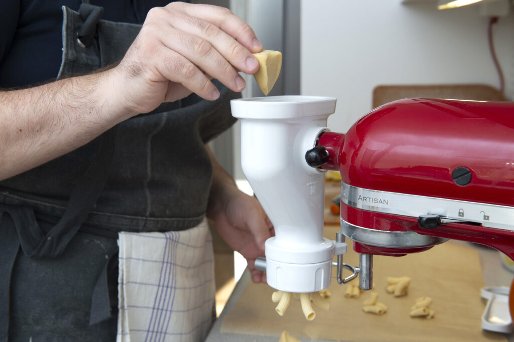 Valmista tuorepasta joko pastamyllyllä tai pastakoneella. Voit valmistaa nauhapastan myös käsin. Kaulitse silloin neljäsosa taikinasta kerrallaan pitkiksi, noin millimetrin paksuisiksi suorakaiteiksi ja leikkaa niistä sentin levyisiä suikaleita. Jauhota valmiit pastat kevyesti ja anna niiden kuivahtaa pöydällä 15–20 minuuttia.