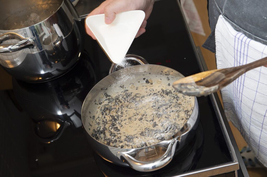 Maista torvisienikastiketta. Voit tarvittaessa lisätä suolaa ja suurustaa kastiketta hieman maissisuurusteella. Varmista, että olet tyytyväinen kastikkeeseen, ennen kuin keität pastan.