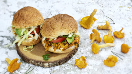 Nyhtöbataatti-sieniburgerit ovat kokeilemisen arvoinen vaihtoehto perinteiseksi mielletylle lihaiselle burgerille. Täytteeseen voi käyttää metsästä kerättyjä sieniä tai kaupan valikoimaa.