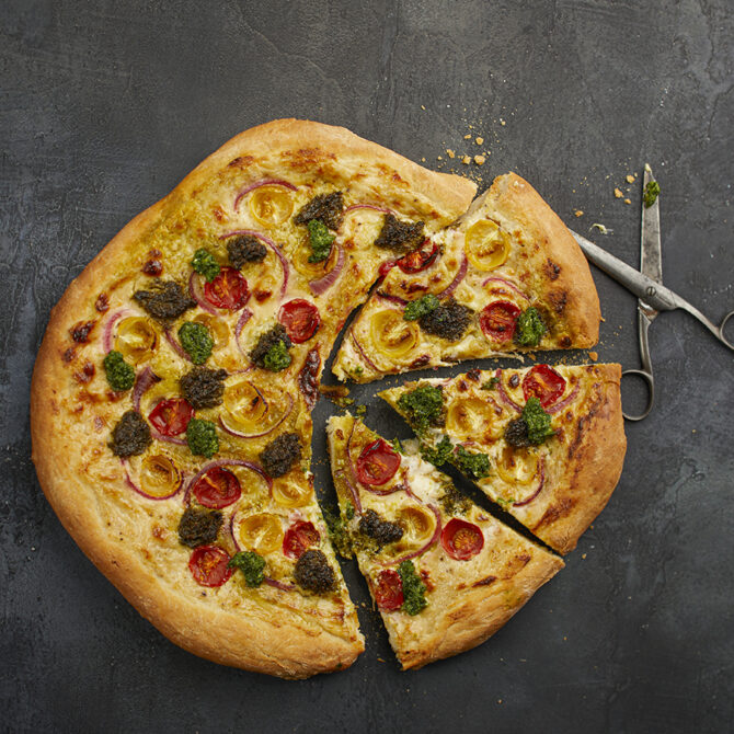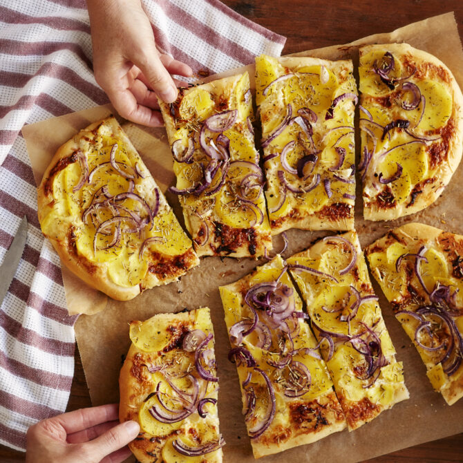 Ruokaisampaa linjaa edustaa perunapizza, jossa ohuiksi viipaloidut perunat, sipuli, rosmariini ja pieni hunajainen makeus tekevät kokonaisuudesta täyttävän ja aromikkaan. Se toimii mainiosti sellaisenaan tai esimerkiksi keiton tai salaatin kaverina.
