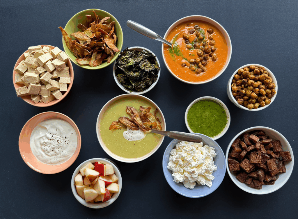 Ripotebaari tuo keittoon makua, väriä ja erilaisia suutuntumia. Lisukkeista voi valita esimerkiksi rapeita elementtejä, kuten perunankuori- tai lehtikaalisipsejä ja ruiskrutonkia, palkokasveja ja kasviksia, kuten paahdettuja kikherneitä ja marinoitua tofua, tai täyteläisiä makuja yrttiöljystä murustettuun fetaan. Ideana on rohkaista kokeilemaan uusia yhdistelmiä ja oivaltamaan, miten pienillä lisäyksillä arkinen ruoka muuttuu monipuolisemmaksi.