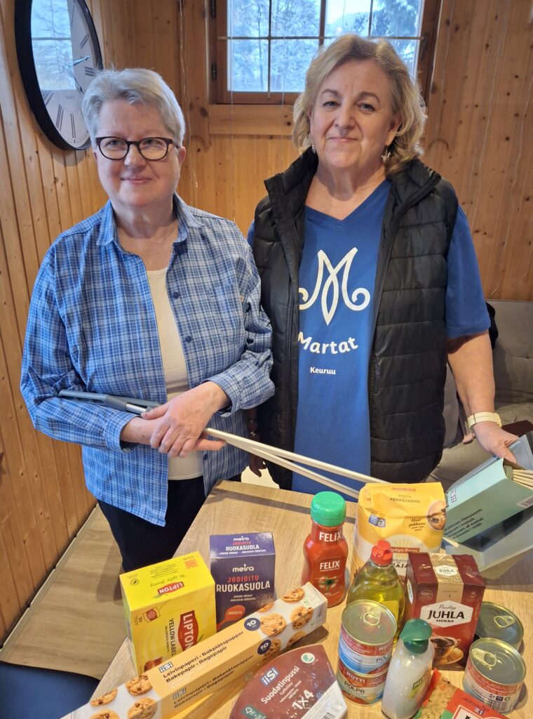 – Saimme ensikosketuksen ukrainalaisiin yksityishenkilöiden järjestämillä illallisilla. Me Martat valmistimme yhdessä ukrainalaisten kanssa ruoat. Kustansimme heille vapaaehtoismaksuista saamillamme rahoilla lahjakortteja kauppoihin, muistelee Marttojen rahastonhoitaja Kaisa Järvenpää.
