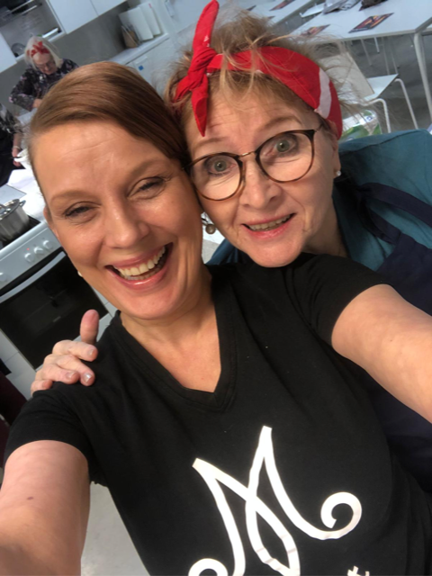 Martta-aktiivit Marjukka Mikkola Matinkylän Martoista Espoosta ja Helena Kauranen Lappeen Martoista tapasivat ensimmäisen kerran Espoon marttayhdistysten kokouksessa vuonna 2015. Varsinainen ystävyys syntyi kuitenkin tositoimissa Ommel-festivaalien keittokeittiössä, kun Helena tuli työvuoroon Marjukan emännöimään keittiöön.