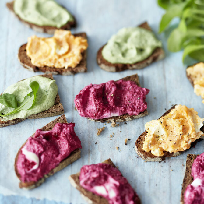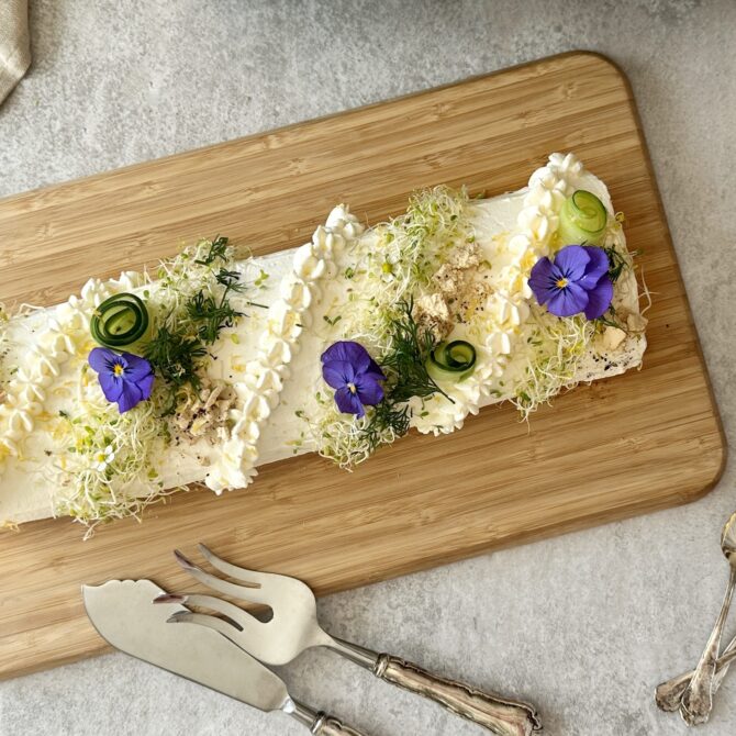 Uuden vuoden tarjoilut rakentuvat tänä vuonna rennosta runsaudesta ja monipuolisista mauista. Pöydässä kohtaavat mausteiset perunat, pienet suolaiset naposteltavat sekä värikäs valikoima levitteitä hummuksesta paputahnaan ja porkkanalevitteeseen. Raikkaat tuorejuustoleivät ja dippien kanssa tarjottavat herkut tuovat kokonaisuuteen keveyttä, kun taas makea jälkiruoka viimeistelee juhlahetken. Mukana on myös näyttävä vegaaninen voileipäkakku savutofutäytteellä, joka toimii sekä ruokaisana tarjottavana että katseenvangitsijana juhlapöydässä.