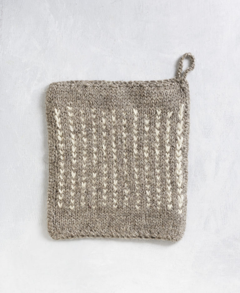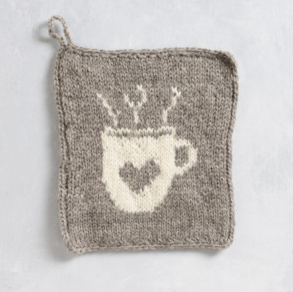 Kahvikuppikuvioinen patalappu on käytännöllinen ja kaunis lisä keittiöön, ja se syntyy yllättävän yksinkertaisella kirjoneuleella. Pyörönä neulottu malli tekee patalapusta kaksinkertaisen, jolloin se suojaa käsiä tehokkaasti kuumalta ja kestää käyttöä arjessa pitkään.