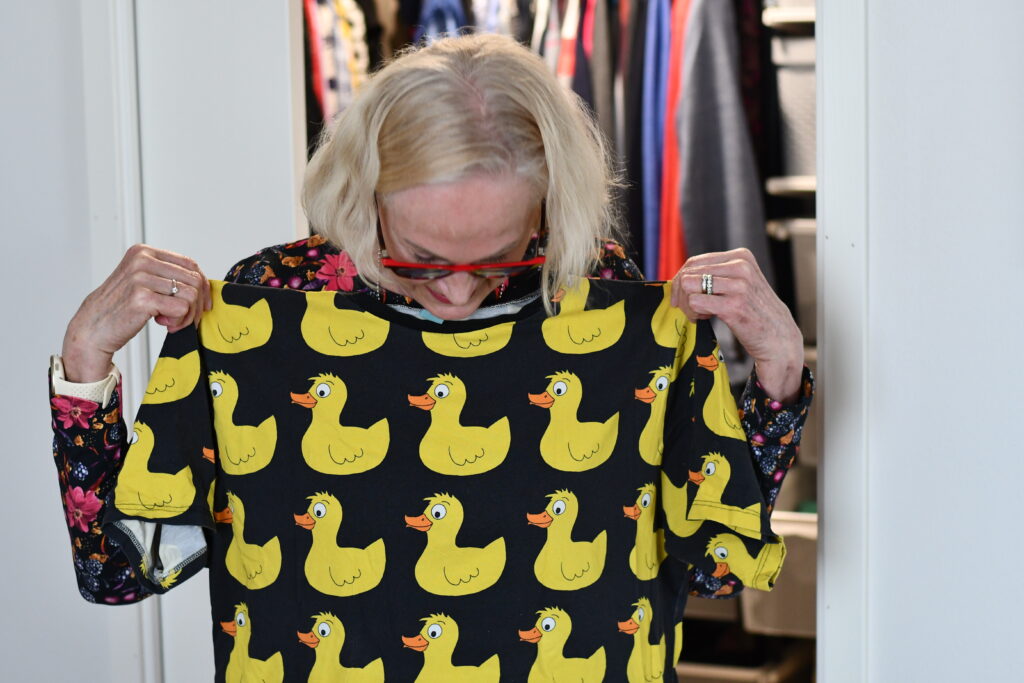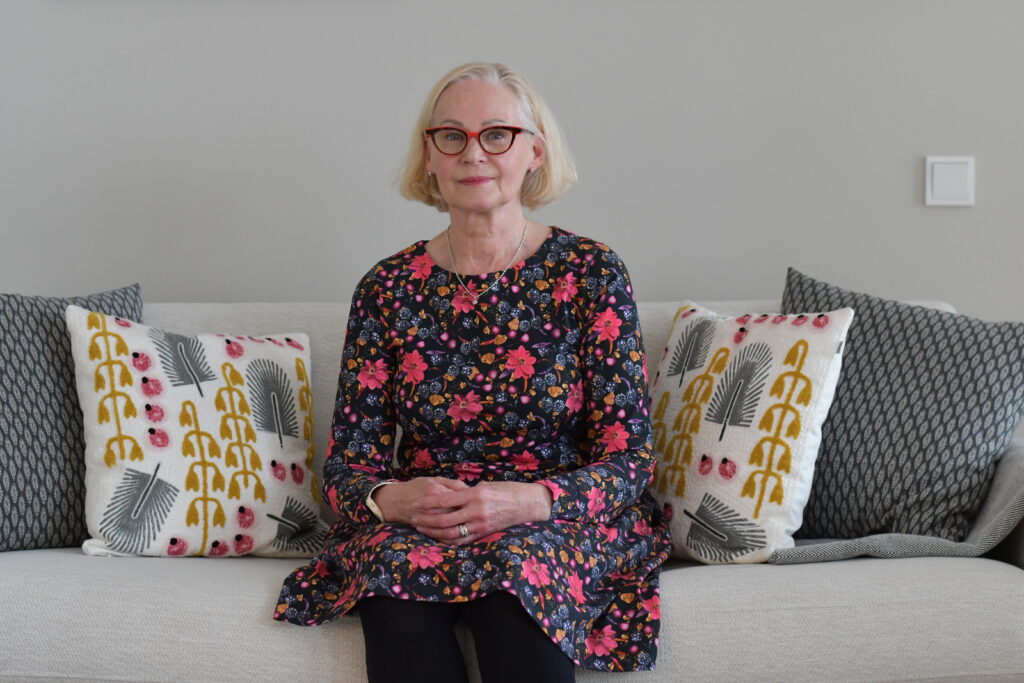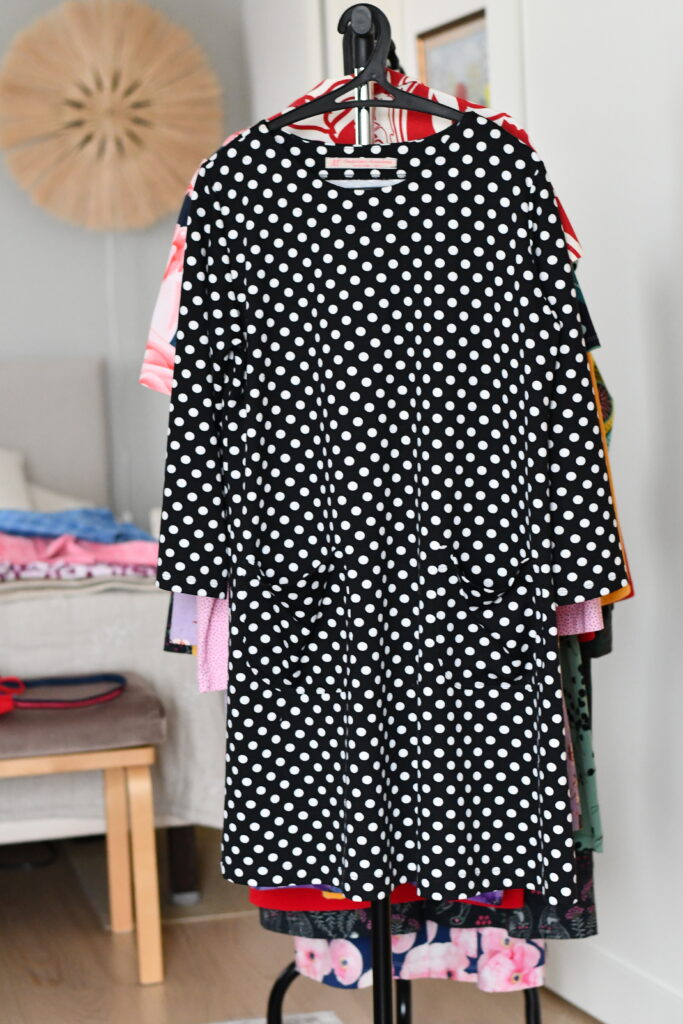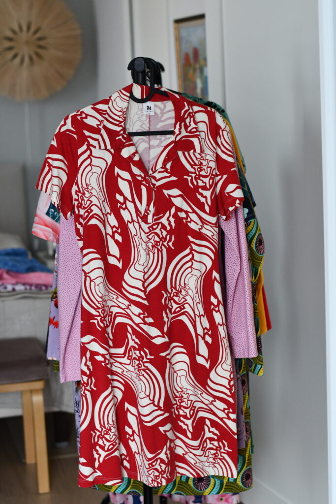 – Kun ostan uutta, ostan Nansoa. Tämäkin mekko on hirmu vanha, ainakin 25 vuotta – eikä se ole mennyt miksikään. Ostin mekon, kun olin vielä työelämässä. Monet työvaatteeni roikkuvat yhä henkarissa kaapissa, koska en raaski luopua niistä. Ne ovat niin laadukkaista materiaaleista, yhä hyvässä kunnossa ja mahtuvat vielä päälle.