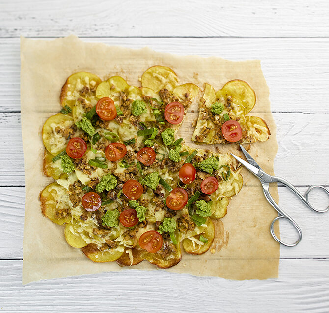 Luovuutta keittiössä voi hyödyntää myös hauskemmissa toteutuksissa: perunakupit toimivat näyttävinä tarjottavina, kun taas boxty-perunaletut tuovat kansainvälisiä vivahteita pöytään. Jopa pizza saa uuden twistin, kun pohjana käytetään perunaa ja täytteenä villikalaa.
