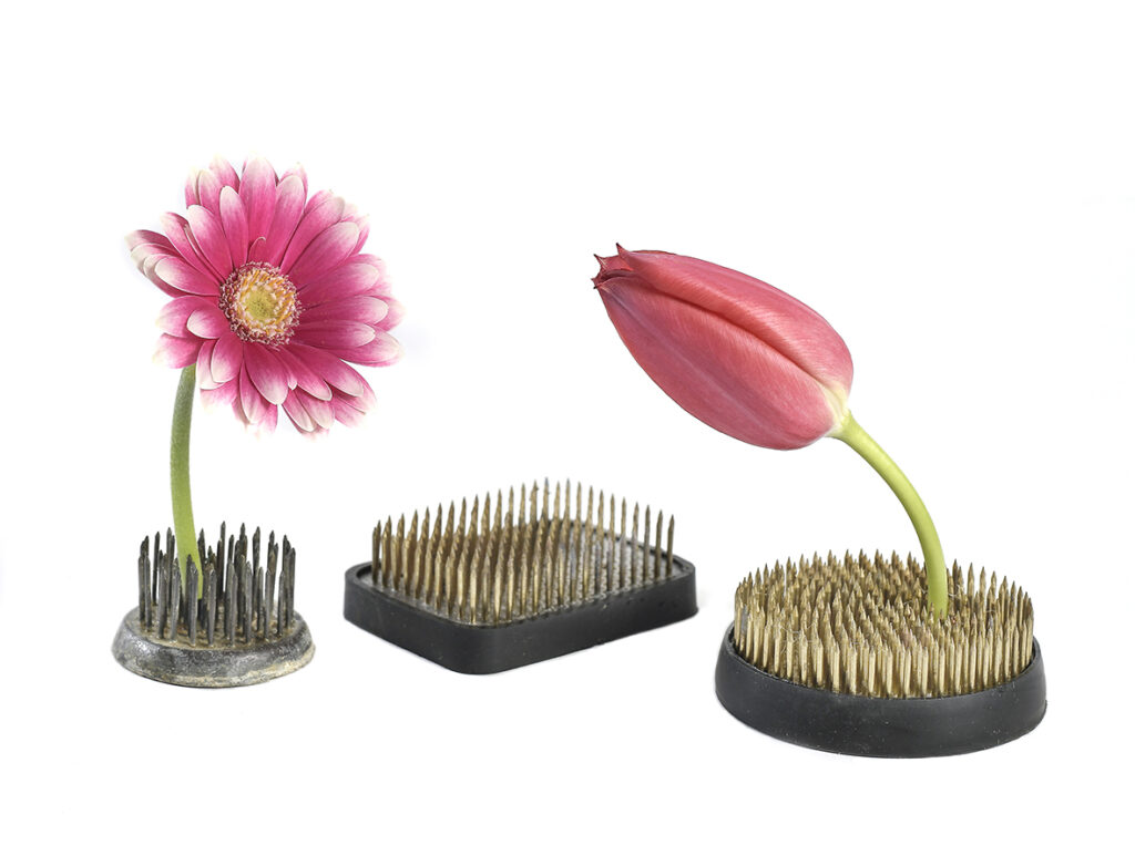 Kukkasiilin idea on yksinkertainen: kukat asetellaan piikkien väliin haluttuun kulmaan ja korkeuteen. Näin syntyy elävä pinta, jossa jokainen kukka saa tilaa. Erityisen kauniisti tekniikka toimii tulppaaneilla, joiden kaartuvat varret ja heleät sävyt pääsevät esille.