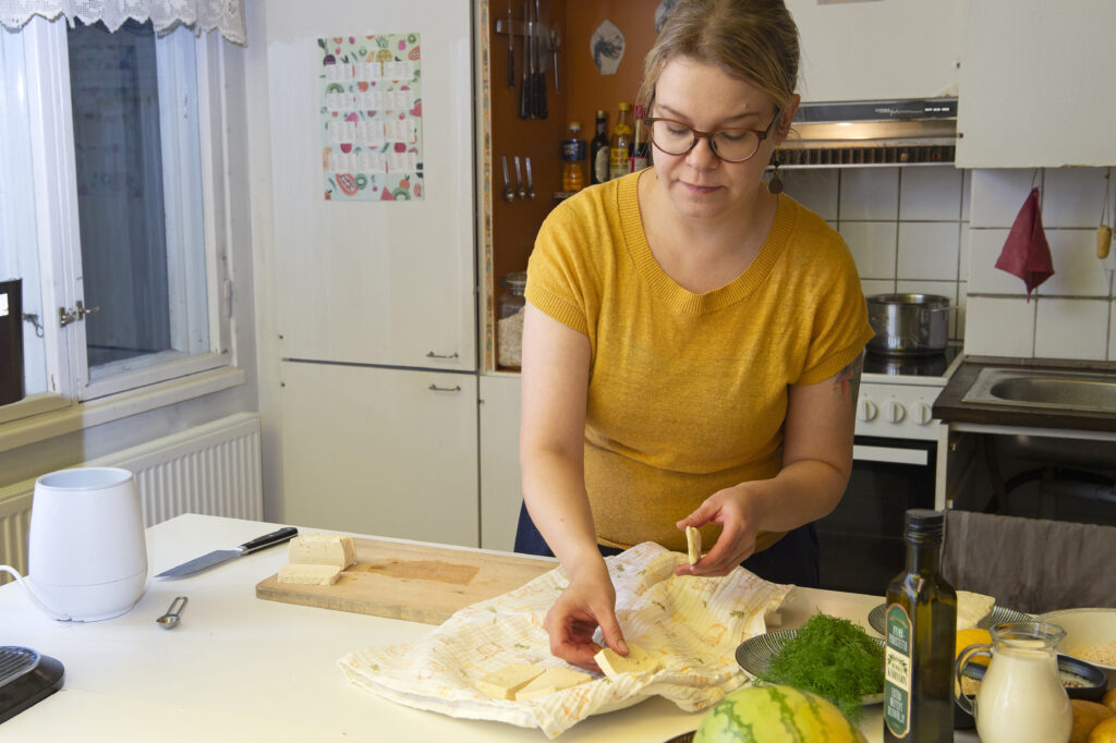 – Kolmevuotias ei välttämättä syö tofua ruoassa, mutta kun hän saa osallistua ruoanlaittoon, hän monesti syö oman osansa tofua pilkkoessaan.