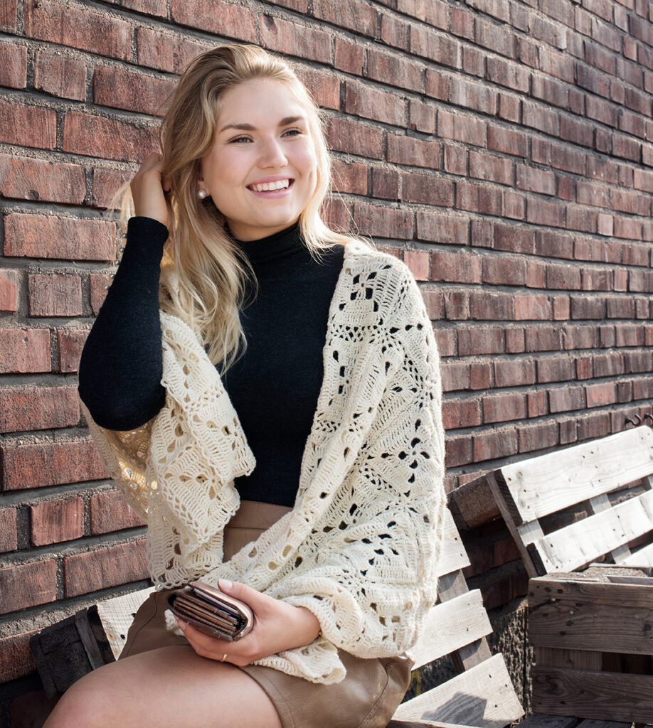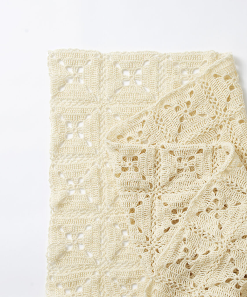 Herkkä pitsishaali on ajaton klassikko, joka hurmaa keveydellään ja monikäyttöisyydellään. Sama ohje muuntuu helposti myös kauniiksi torkkupeitoksi.